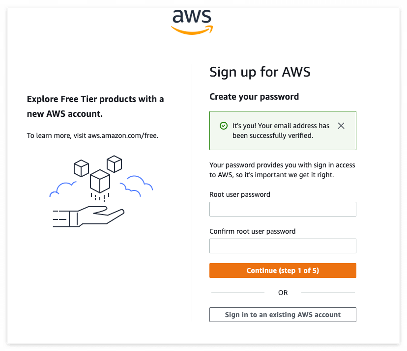 이제 계정이 설정되어 활성화되는 중입니다. 활성화가 완료되면 AWS로부터 이메일을 받게 됩니다.